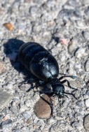 Es handelt sich um einen Schwarzblauer Ölkäfer, auch "Maiwurm" genannt (Meloe proscarabaeus).